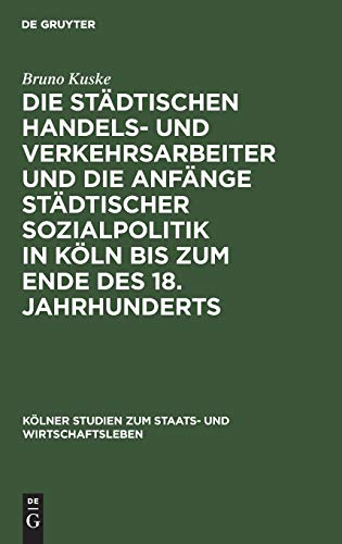 Die Städtischen Handels Und Verkehrsarbeiter Und Die Anfänge Städtischer Sozialpolitik in Köln Bis Zum Ende Des 18. Jahrhunderts (Kölner Studien Zum Staats Und Wirtschaftsleben)