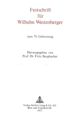 Festschrift Fuer Wilhelm Westenberger: Zum 70. Geburtstag