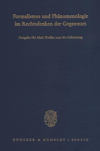 Formalismus Und Phanomenologie Im Rechtsdenken Der Gegenwart: Festgabe Fur Alois Troller Zum 8. Geburtstag