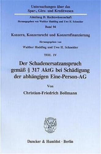 Der Schadenersatzanspruch Gemass 317 Aktg Bei Schadigung Der Abhangigen Eine-person-ag: Konzern, Konzernrecht Und Konzernfinanzierung (Untersuchungen ... Abteilung B: Rechtswissenschaft, 94)