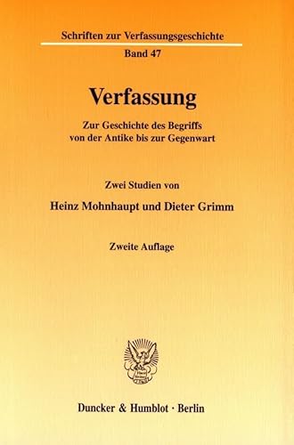 Verfassung: Zur Geschichte Des Begriffs Von Der Antike Bis Zur Gegenwart. Zwei Studien (Schriften Zur Verfassungsgeschichte, 47)