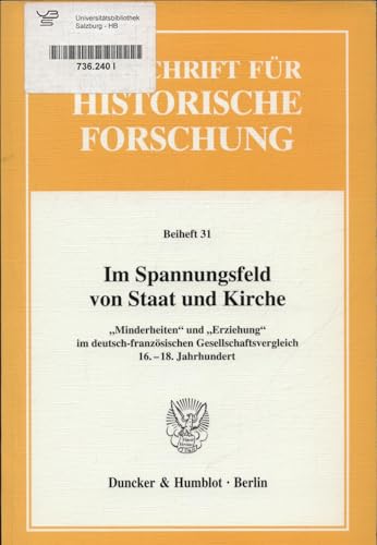 Im Spannungsfeld Von Staat Und Kirche: Minderheiten Und Erziehung Im Deutsch-franzosischen Gesellschaftsvergleich, 16.-18. Jahrhundert (Zeitschrift Fur Historische Forschung. Beihefte, 31)