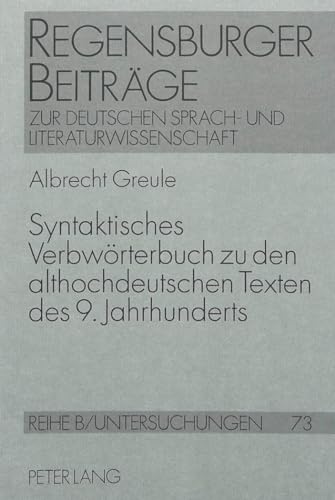 Syntaktisches Verbwoerterbuch Zu Den Althochdeutschen Texten Des 9. Jahrhunderts: Altalemannische Psalmenfragmente, Benediktinerregel, ... Zur Deutschen Sprach- Und Literaturwi)