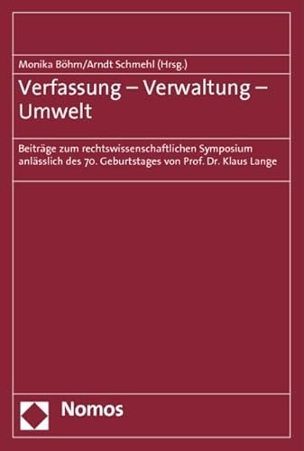 Verfassung - Verwaltung - Umwelt: Beitrage Zum Rechtwissenschaftlichen Symposium Anlasslich Des 70. Geburtstages Von Prof. Dr. Klaus Lange