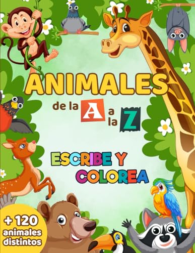 Animales de la A a la Z - Escribe y colorea: Más de 120 simpáticos animales para colorear. Libro de colorar para niños y niñas de 4 a 8 años o más. Gran formato (DIN A4)