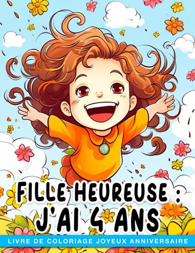 Fille heureuse : J'ai 4 ans - Livre de coloriage Joyeux anniversaire: Obtenez 30 illustrations adorables pour célébrer les 4 ans de votre petite fille ou Noël avec des cadeaux parfaits